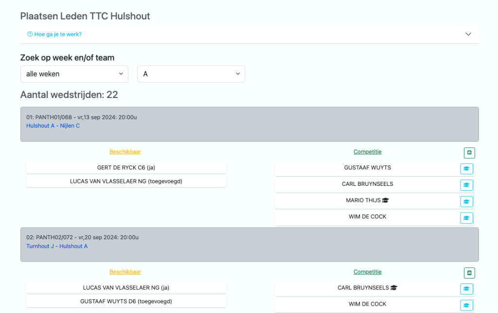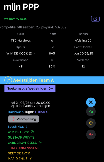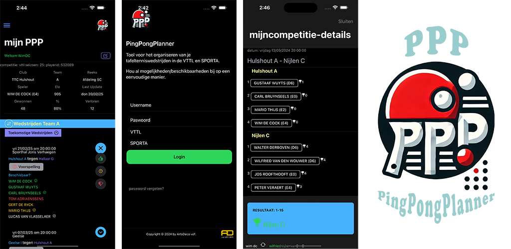 PingPongPlanner is een applicatie en administratieve website ontworpen voor tafeltennisverenigingen die deelnemen aan de VTTL of SPORTA competitie. Hiermee kunnen geregistreerde clubs en gebruikers hun teams samenstellen en beheren en hebben ze toegang tot realtime informatie over beschikbaarheden van hun leden en competitieactiviteiten.